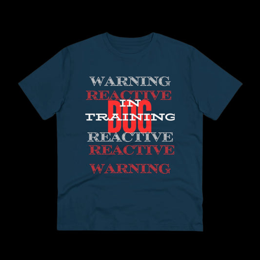 "WARNING: REACTIVE DOG IN TRAINING" Double-Sided T-Shirt | Organic Cotton Dog Training Tee | Front & Back Print