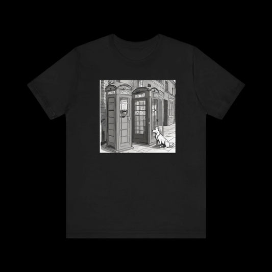 📞 British Iconic Dog T-Shirt – Phone Box & Pup Design 🇬🇧