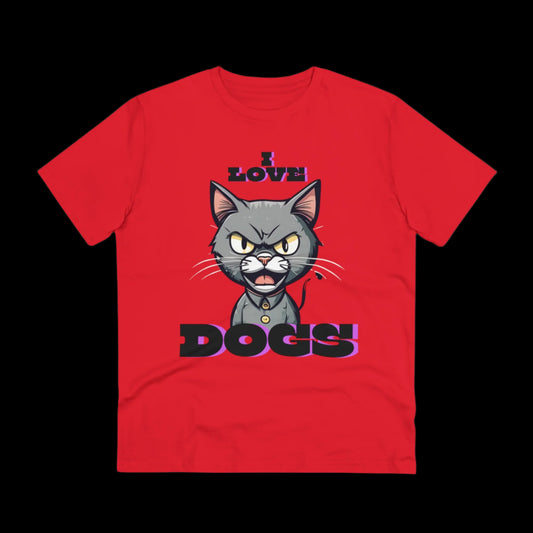 Funny "I LOVE DOGS" Ironic Cat T-Shirt | Organic Cotton Pet Humor Tee | Eco-Friendly Joke Gift