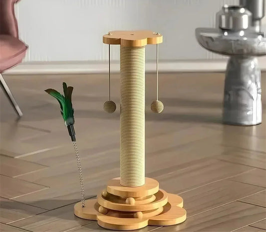 Handcrafted Wooden Cat Scratching Post & Interactive Play Toys 🐾✨