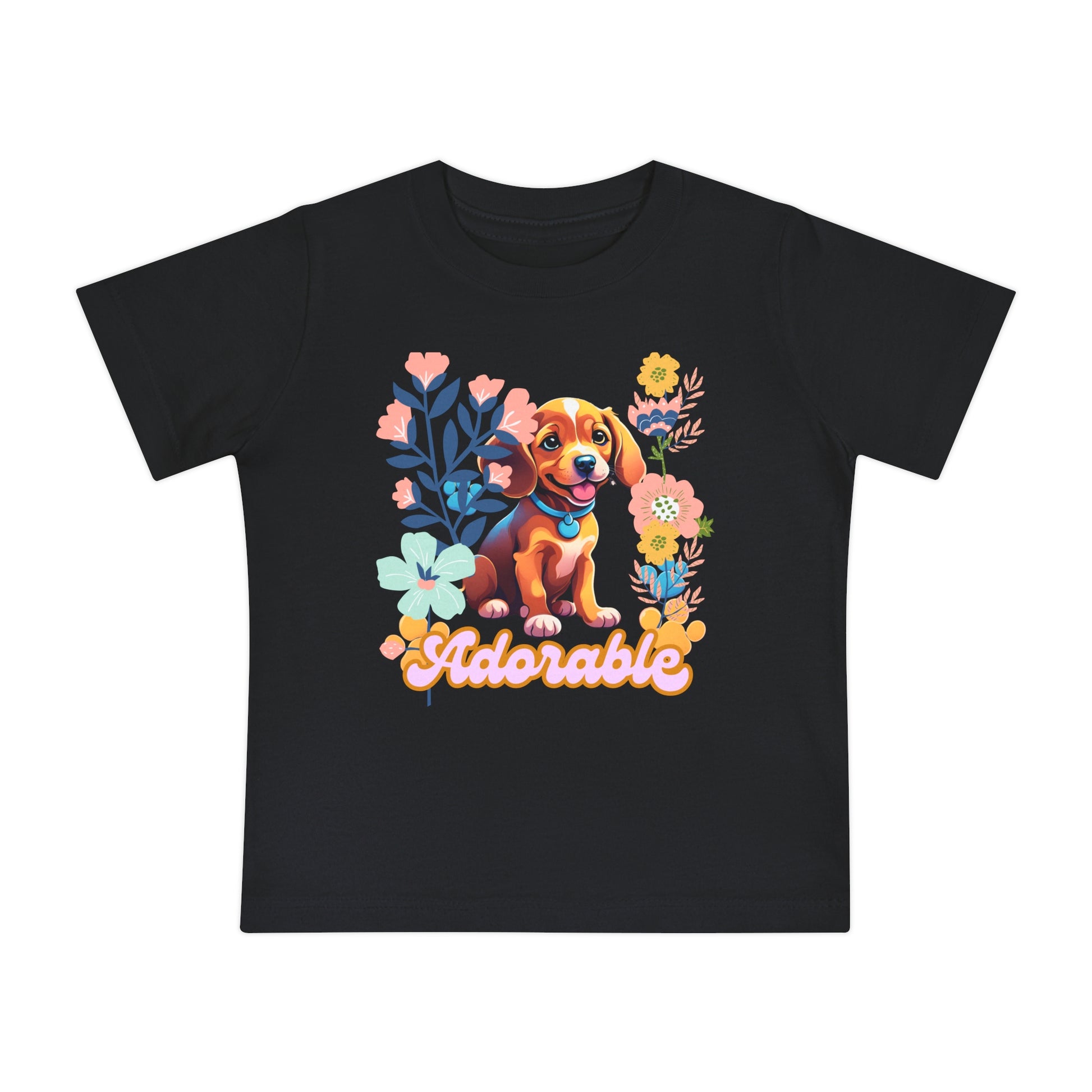 🌸 Adorable Baby T-Shirt with Dog & Wildflowers 🌼 Soft 100% Cotton Comfort!-Sniffwaggleandwalk™