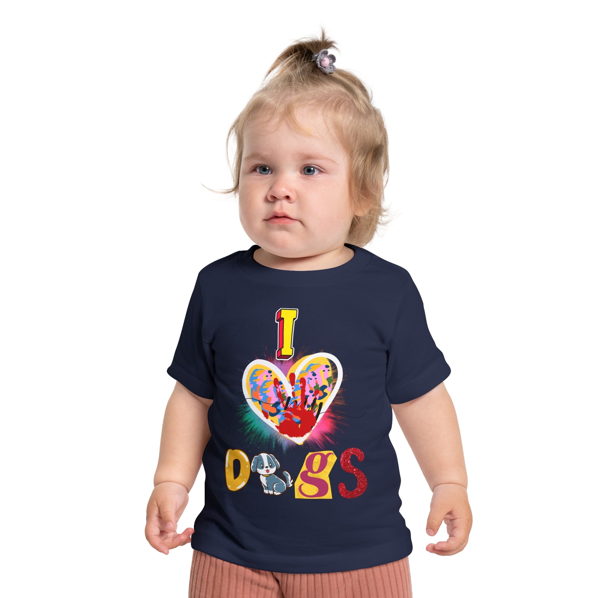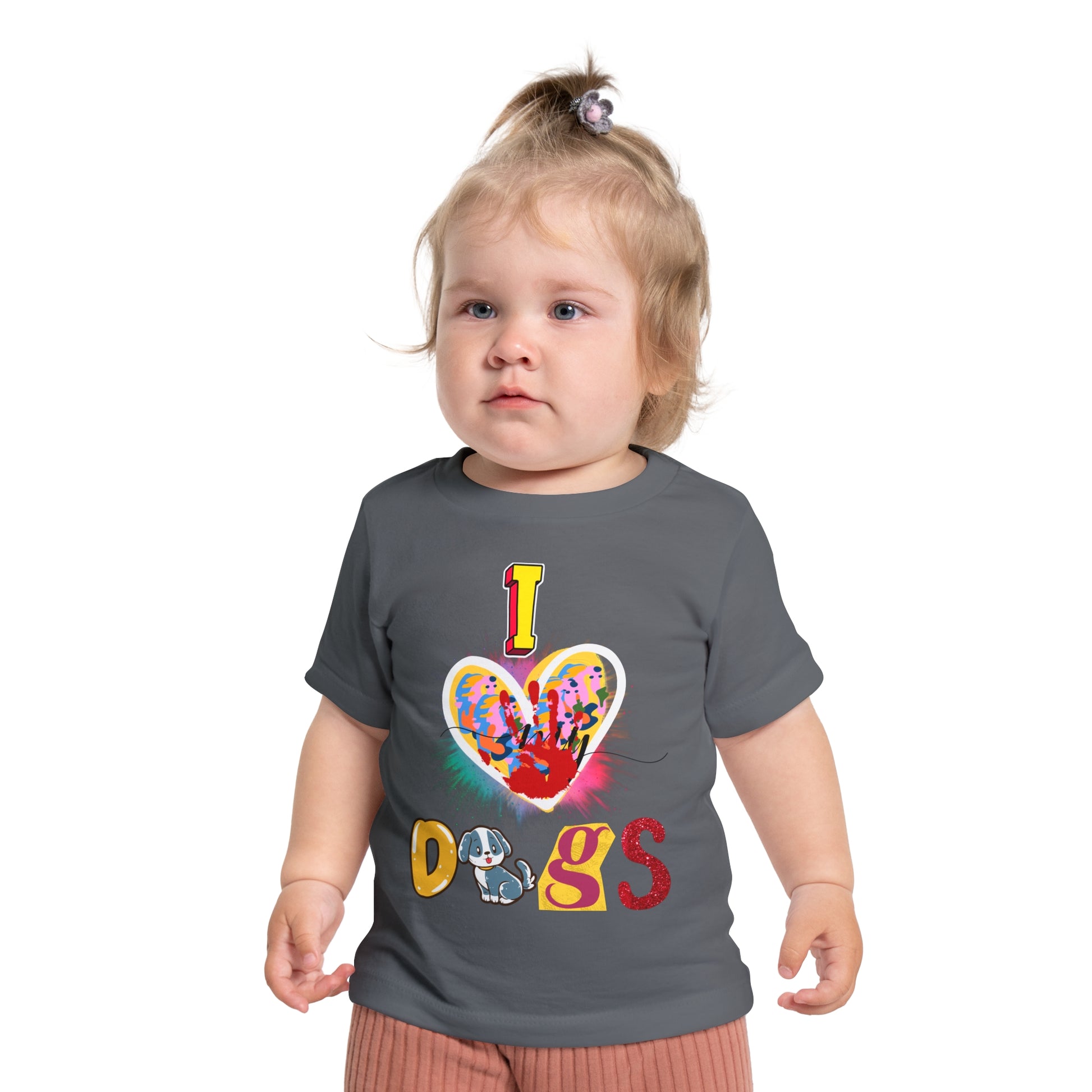 Give your little one the softest hug with this super-comfortable "I Love Dogs" T-shirt! Featuring a colorful, playful design, this tee is perfect for dog-loving families. Made from premium, pre-shrunk Airlume combed and ringspun cotton, it’s both durable and gentle on baby’s skin.