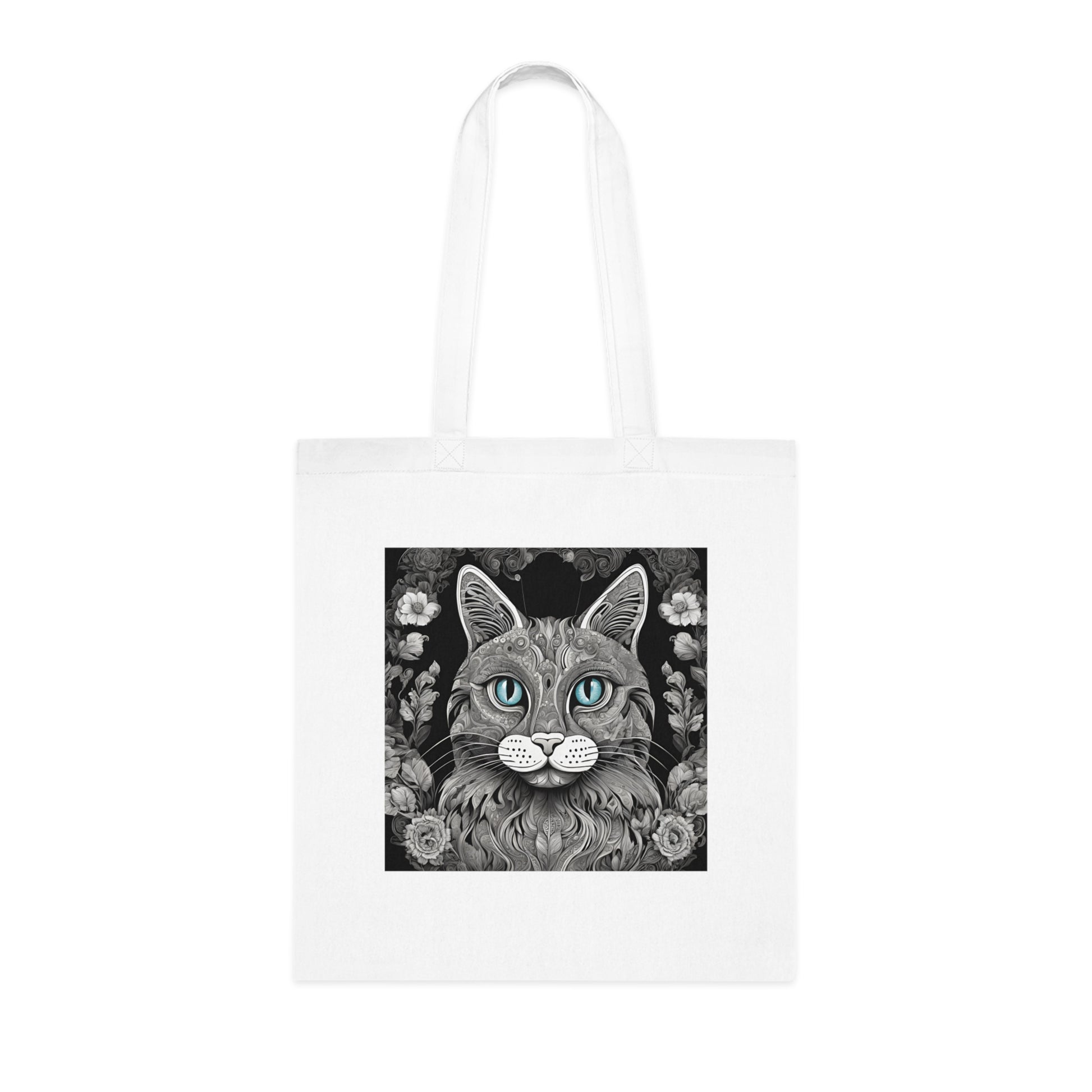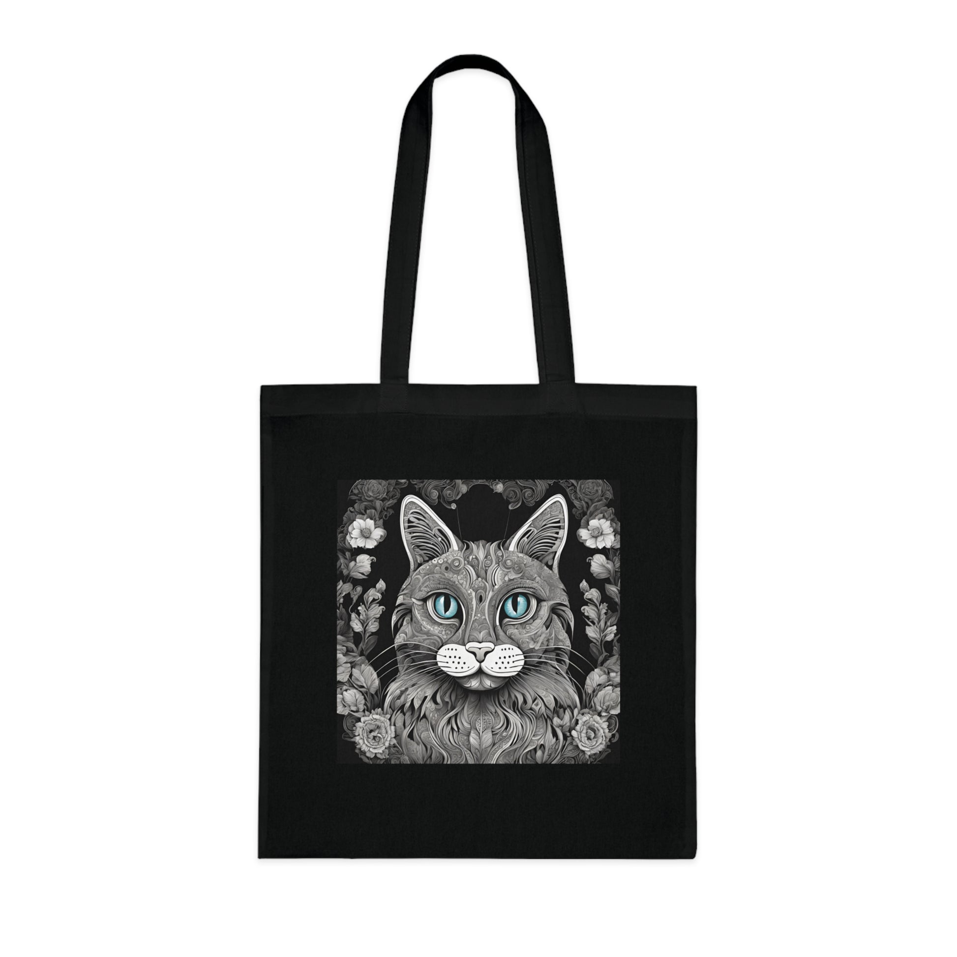 Black & White Cat Design Cotton Tote – Eco-Friendly & Stylish Carry-All!-Sniffwaggleandwalk™