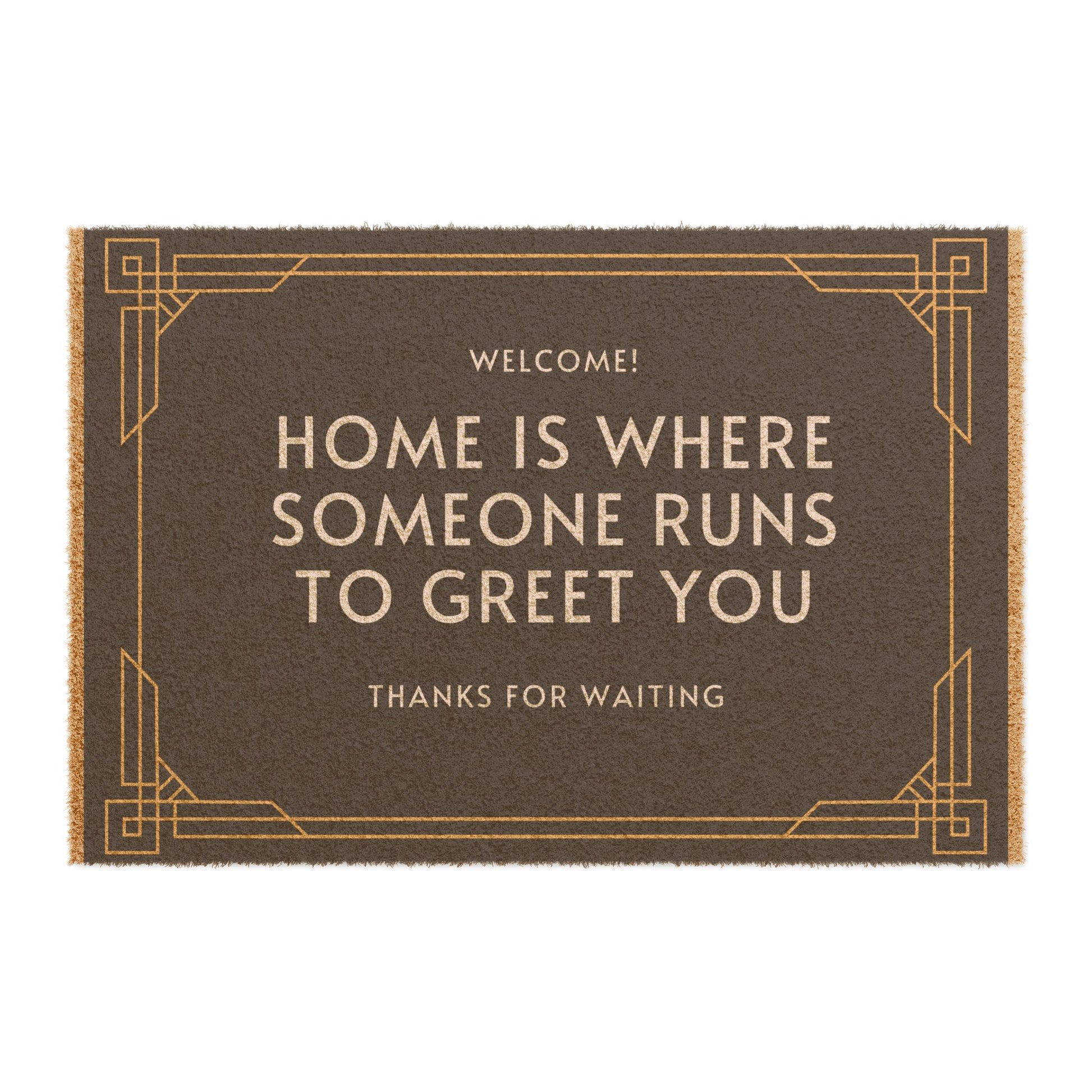 "HOME IS WHERE SOMEONE RUNS TO GREET YOU" ECO friendly Doormat