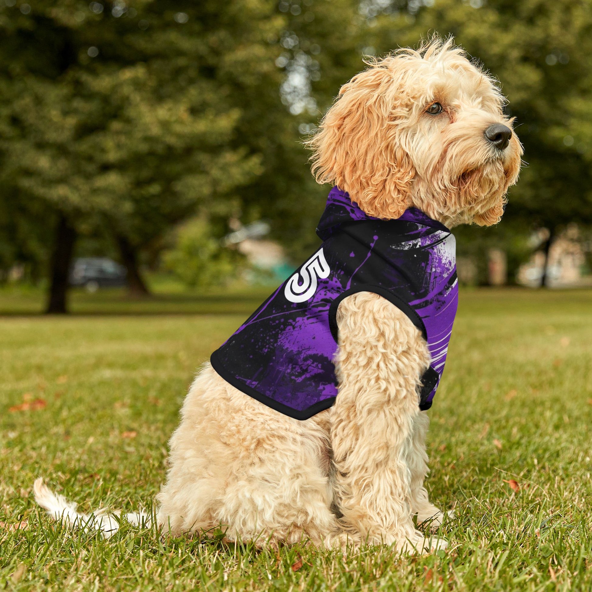 A bold statement for pets moving with momentum. The Midnight Signal™ 555 Pet Hoodie blends urban purple grunge textures with the powerful symbolism of 555 — change, motion, and forward energy. Designed for pets who lead, not follow.
