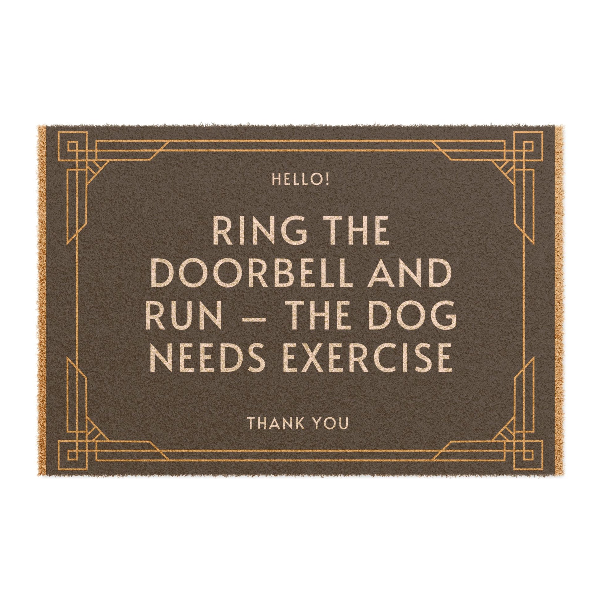 "RING THE DOORBELL AND RUN-THE DOG NEEDS EXERCISE" ECO friendly Doormat