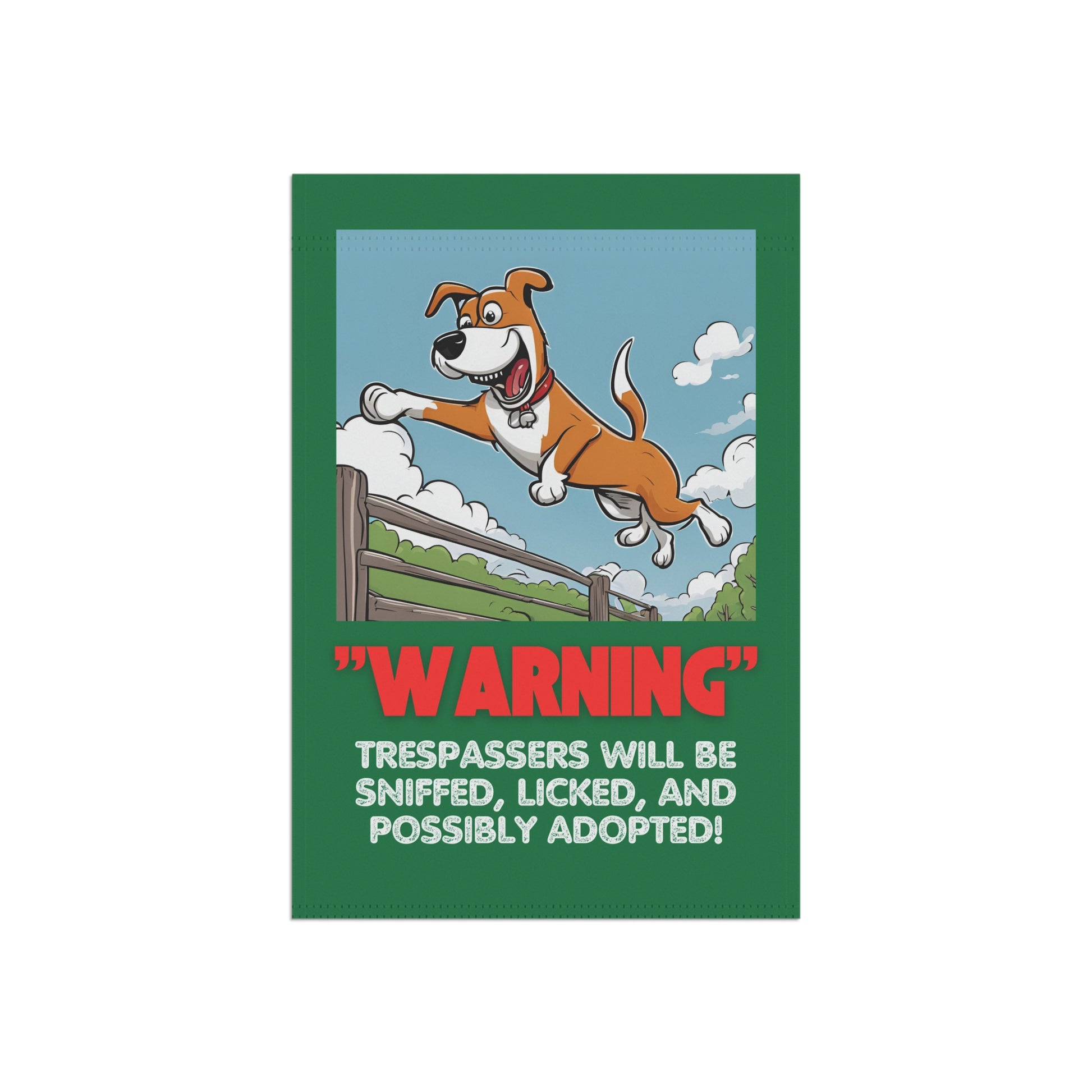 "Warning: Trespassers Will Be Sniffed, Licked, and Possibly Adopted" Funny Garden Sign – 12'' × 18'' Durable Yard Banner – $6.09 Flat Rate Shipping!